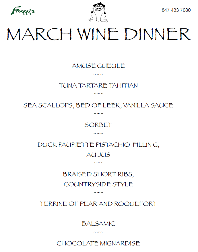 $140 per person All-Inclusive with food, wine, tax and gratuity. 🐸